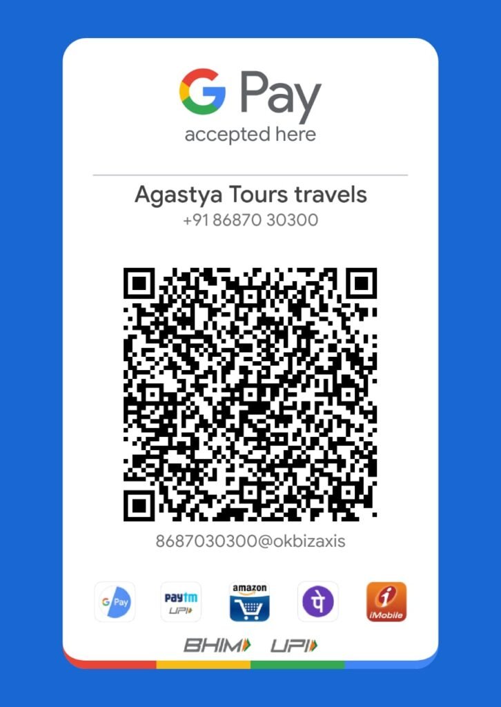Agastya Travel offer you Digital Payment you can pay us by using our QR code or using our number for phone pay / google pay paytm Number 8687030300